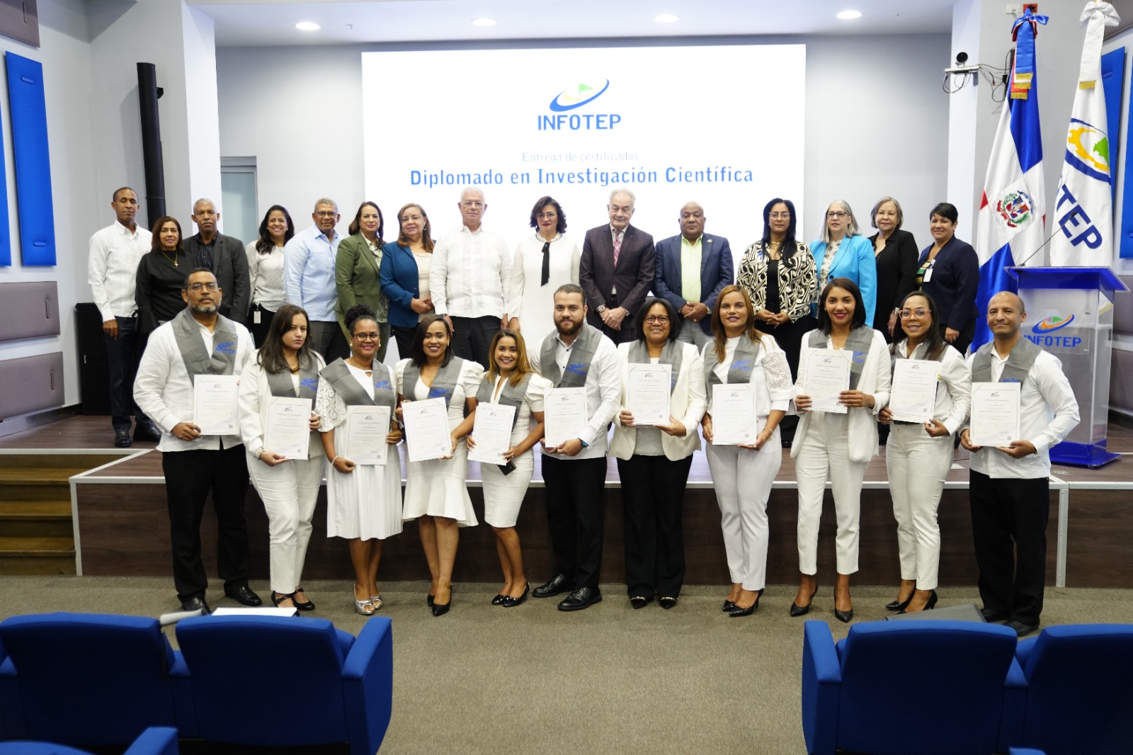 “El INFOTEP, cumpliendo su rol de rectoría y formador técnico profesional, ha dirigido su atención a la investigación. Y hoy se complace en certificar a los primeros graduandos del diplomado en Metodología de Investigación Científica, realizado con el más alto rigor por acreditados académicos de investigación nacionales e internacionales.”, refirió.