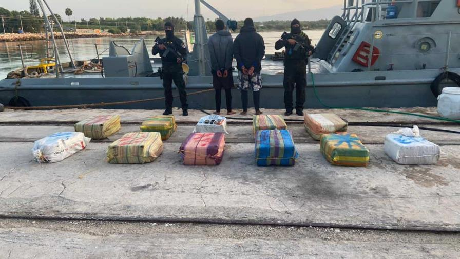 Horas después, de intensa persecución, lograron intervenir a varias millas náuticas al sur de las costas de Enriquillo, una embarcación con dos hombres a bordo, quienes al notar la presencia de las unidades, procedieron a lanzar las pacas a las aguas del mar Caribe.