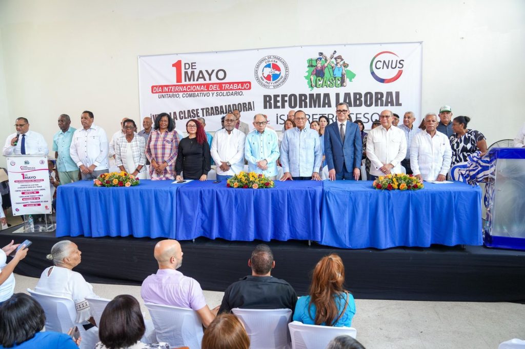 Santo Domingo, – En un firme pronunciamiento durante el acto de conmemoración del Día Internacional del Trabajo, las centrales sindicales del país proclamaron que no permitirán retrocesos en las conquistas laborales, advirtiendo que cualquier intento del Congreso de modificar el artículo 80 del Código de Trabajo que consagra el auxilio de cesantía atentaría contra la paz laboral construida durante décadas.