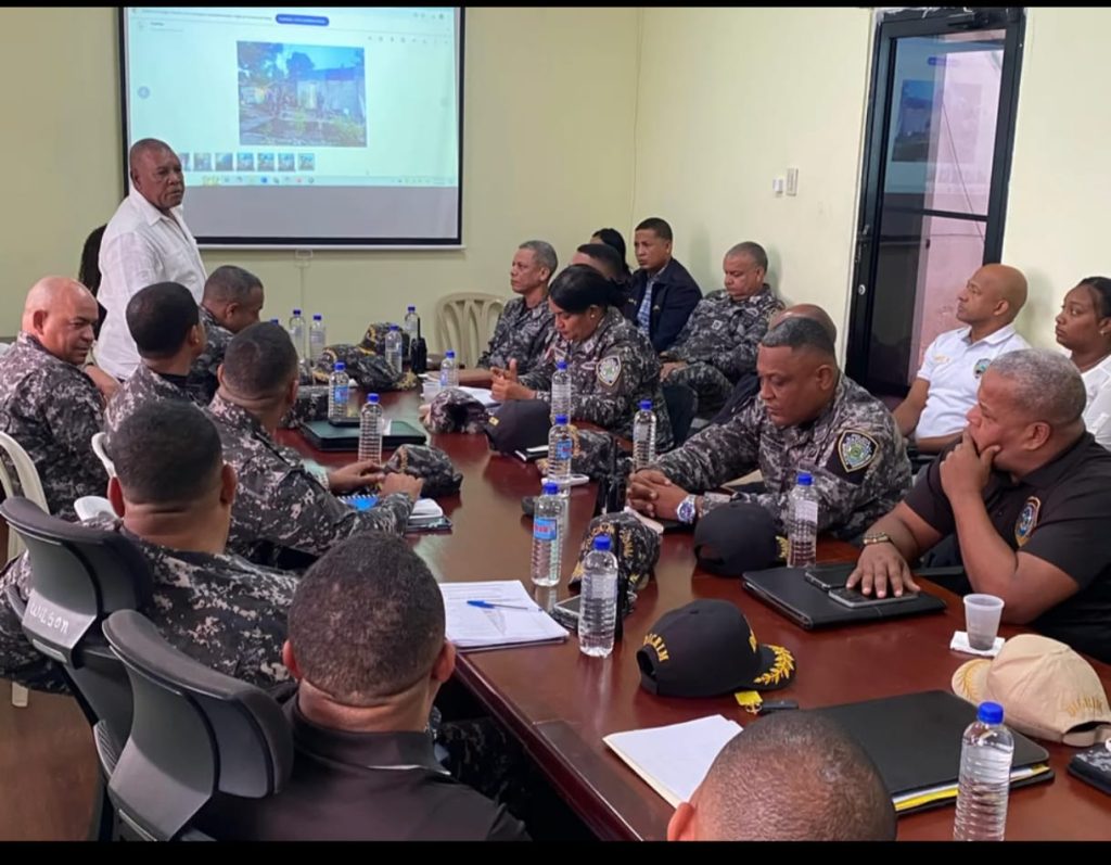 San Pedro de Macorís. El Director Regional Sureste,P.N., General Ramon E. Ramirez Encarnación encabezo junto a la Magistrada Fiscal Josmery Mejía, la acostumbrada reunion semanal de seguimiento de los trabajos estratégicos de seguridad ciudadana con los oficiales superiores y subalternos con funciones de mando de esta regional y los departamentos a fines.